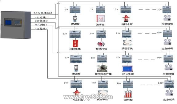根據--標準《消防控制室通用技術要求》(GB25506-2010)確定了消防設備電源監控系統的具體設置場所。消防設備電源監控系統宜安裝在各種消防設備電源,如“消火栓(消防炮)系統、自動噴水滅火系統、水噴霧(細水霧)滅火系統、雨淋噴水滅火系統(泵供水方式)、泡沫滅火系統、干粉滅火系統、氣體滅火系統、防煙排煙系統、防火門和卷簾系統、消防電梯、消防應急照明和疏散指示系統、消防設備應急電源(EPS)、消防設備直流電源等。